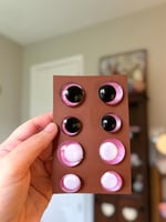 Pink Sinker Eyes for your next crochet project! These sinker eyes are made with mica and resin and come with a back to snap onto your plushie/project. Please note that these are sinker eyes, and they are meant to "sink" into your project. Make sure you are fully pushing the back on to assure they are secured properly.